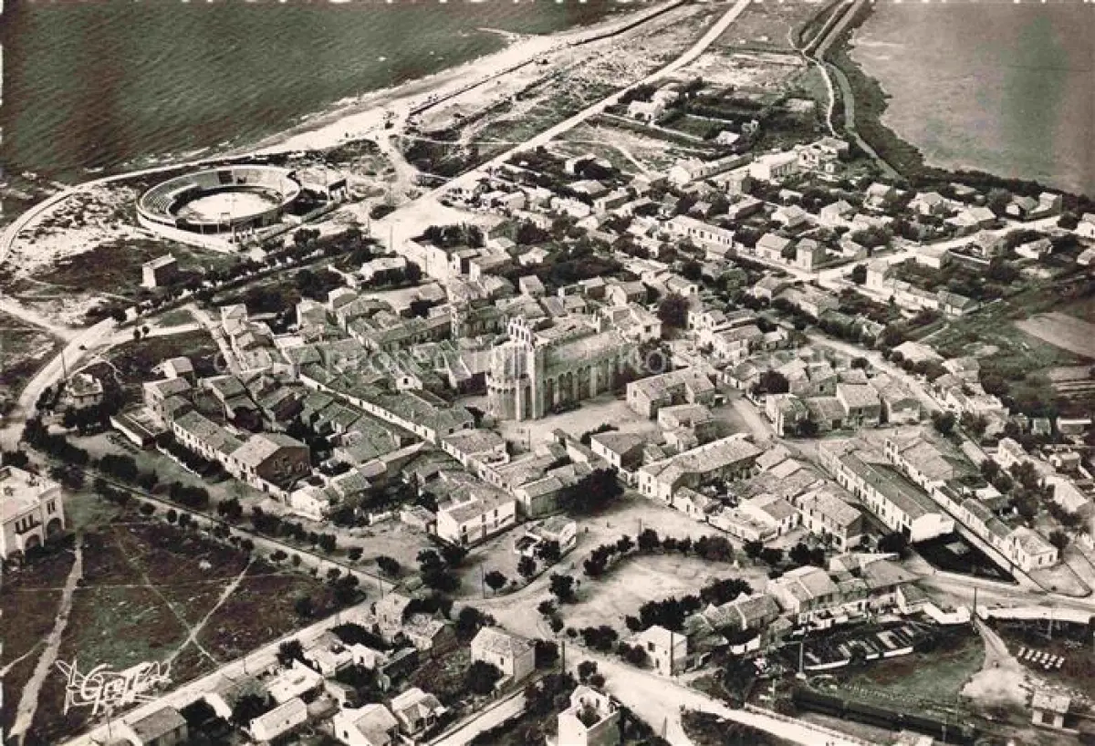 14115788 LES SAINTES-MARIES-DE-LA-MER 13 Bouches-du-Rhone Vue aerienne Ensemble de la Ville l'Eglise et les arenes postalisch nicht gelaufen Erhaltung siehe scans [WerneD78] Wern Katcode 11170013213096