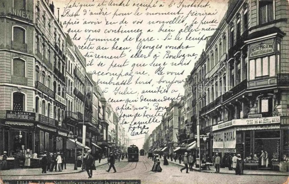 alte Postkarte LILLE 59 Nord Rue Nationale vue prise de la Grande Place postalisch gelaufen Erhaltung siehe scans [FriedD77]