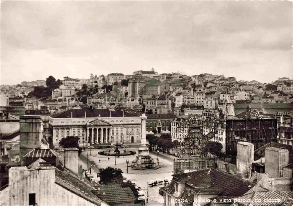 LISBOA Lisbon Lissabon Lisbonne PT Rossio and partial view of the city postalisch gelaufen Erhaltung siehe scans [FriedD77] alte Postkarte Frie Katcode 11420