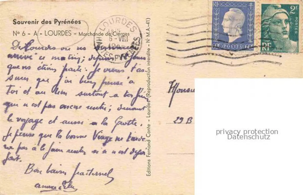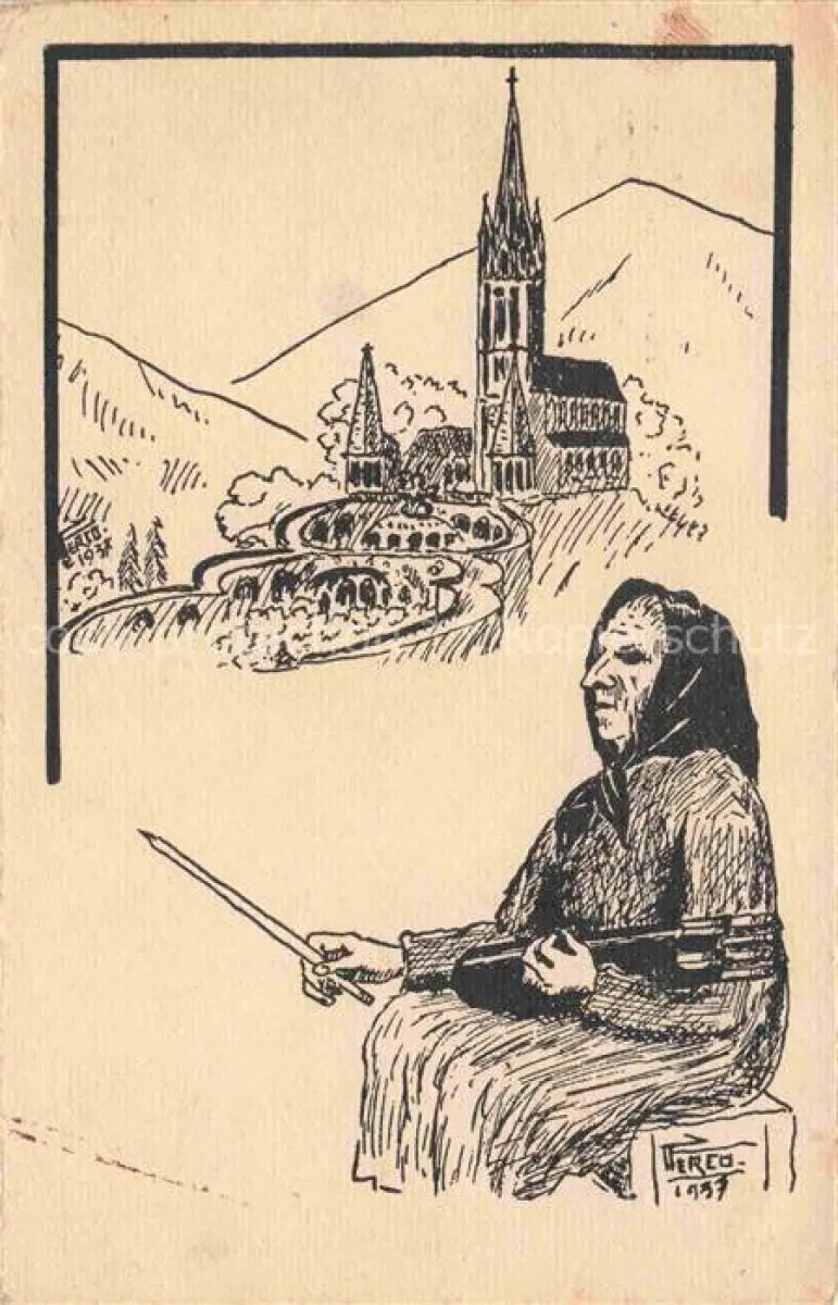 carte postale LOURDES 65 Marchande de Cierges Kuenstlerkarte postalisch gelaufen Erhaltung siehe scans [FriedD77]