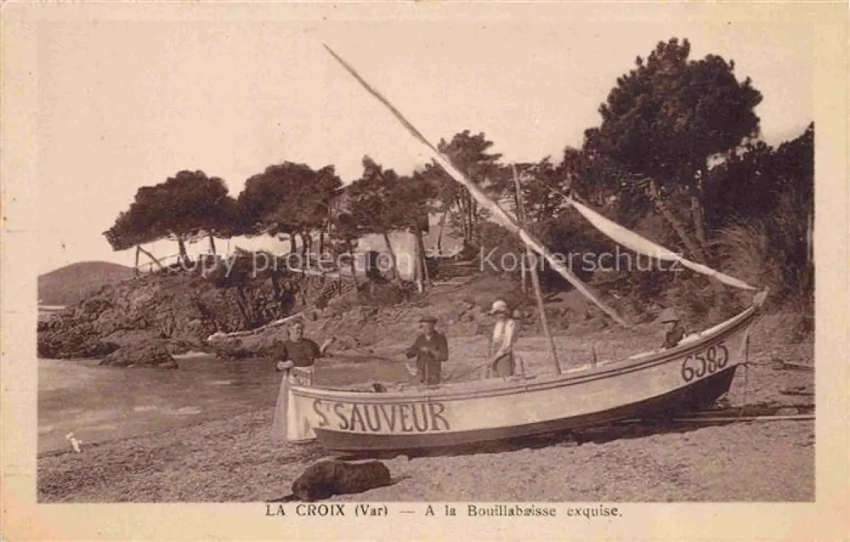 carte postale La Croix-Valmer Draguignan 83 Var A la Bouillabaisse exquise Plage Bateau postalisch gelaufen Erhaltung siehe scans [FriedD77]