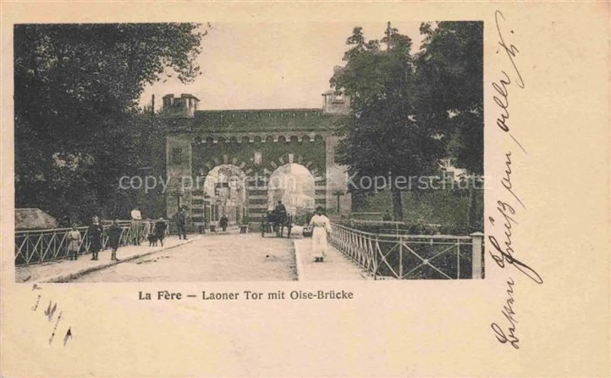 carte postale La Fere LAON 02 Aisne Laoner Tor mit Oise Bruecke postalisch gelaufen Feldpostamt (Stempel) Erhaltung siehe scans [WerneD78]
