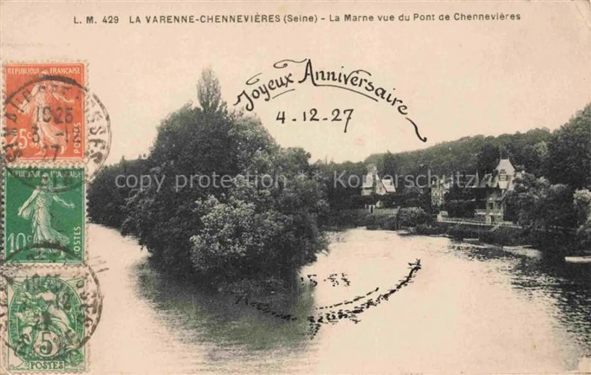 14113004 La Varenne-Chennevieres 94 Val-de-Marne La Marne vue du Pont de Chennevieres postalisch gelaufen Erhaltung siehe scans [WerneD78] carte postale Wern Katcode 11170094194068