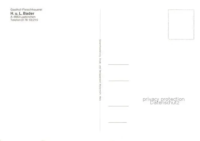 Laakirchen Gasthof-Fleischhauerei H. u. L. Bader Laakirchen postalisch nicht gelaufen nach 1965 Erhaltung siehe scans [PaolaD17] PaolPID1