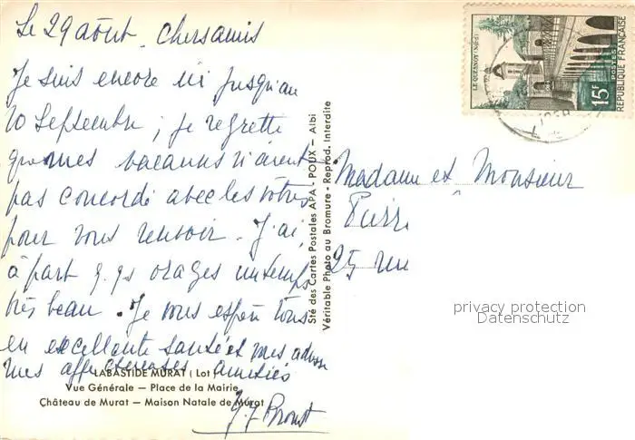 Labastide-Murat Vue generale Place de la Mairie Chateau de Murat Maison Natale de Morat Labastide-Murat postalisch gelaufen nach 1965 Erhaltung siehe scans [WerneD78] WernPID7