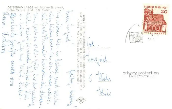 Laboe Ostseebad mit Marine Ehrenmal Fliegeraufnahme Laboe postalisch gelaufen 1966 Erhaltung siehe scans [FriedD77] Frierer