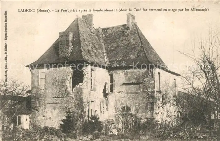 Laimont Presbytere bombardement Laimont postalisch nicht gelaufen 1917 Erhaltung siehe scans [KathaD81] Kathoren