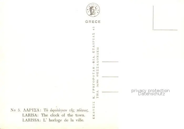 Larisa The clock of the town Larisa postalisch nicht gelaufen nach 1965 Erhaltung siehe scans [WerneD78] WernPID7