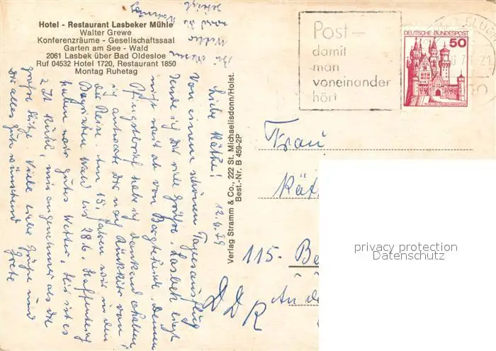 Lasbek_Gut Hotel Restaurant Lasbecker Muehle Gastraeume Zimmer Pferdekoppel Lasbek_Gut postalisch gelaufen 1979 Erhaltung siehe scans [WerneD78] WernPID7