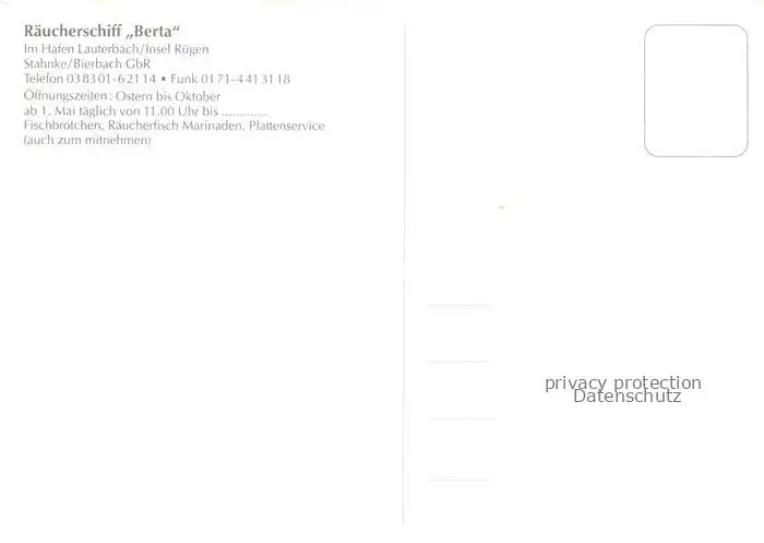 Lauterbach Ruegen Putbus Raeucherschiff Berta Imbiss postalisch nicht gelaufen Erhaltung siehe scans [FriedD77]