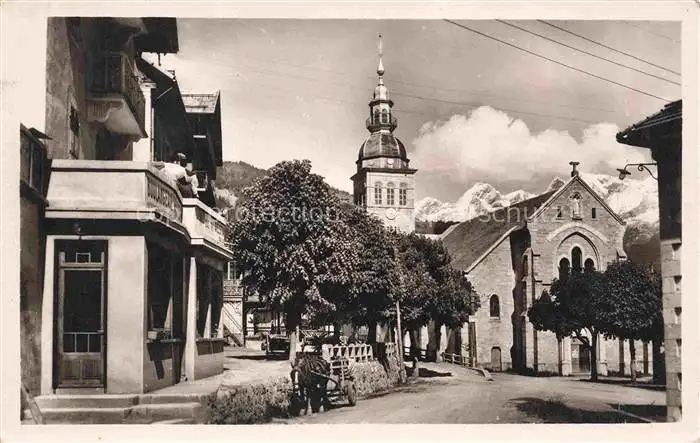 AK / Ansichtskarte Le Grand-Bornand ANNECY 74 Haute-Savoie Eglise et Cafe de la Poste