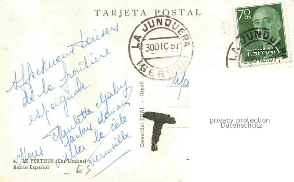old postcard Le Perthus La Junquera Gerona ES Barrio Espanol postalisch gelaufen Erhaltung siehe scans [SanaeD93]