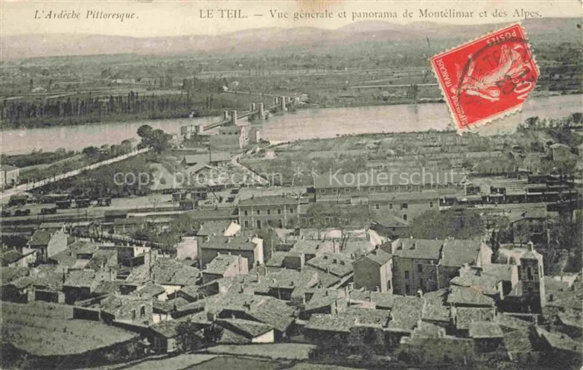 alte Postkarte Le Teil Privas 07 Ardeche Vue générale et panorama de Montélimar et des Alpes postalisch gelaufen Erhaltung siehe scans [FriedD77]