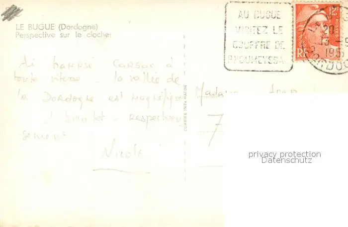 Le_Bugue Perspective sur le clocher Le_Bugue postalisch gelaufen 1955 Erhaltung siehe scans [WerneD78] WernPID7