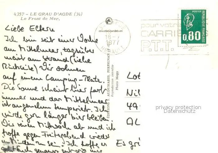 Le_Grau_d_Agde Le front de mer vue aérienne Le_Grau_d_Agde postalisch gelaufen 1977 Erhaltung siehe scans [FriedD77] Frierer