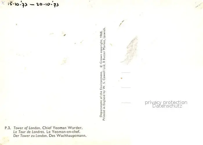 Leibgarde_Wache Chief Yeoman Warder Tower of London Leibgarde Wache postalisch nicht gelaufen 1973 Erhaltung siehe scans [PaolaD17] PaolPID1