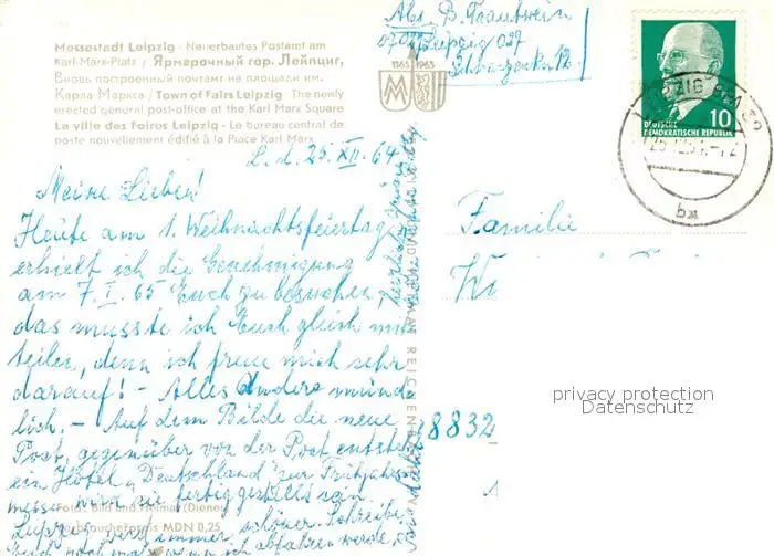 Leipzig Postamt am Karl Marx Platz bei Nacht Leipzig postalisch gelaufen 1964 Erhaltung siehe scans [WerneD78] WernPID7