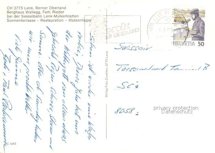 Lenk_Simmental Berghaus Wallegg Wintersportplatz Alpen Lenk Simmental postalisch gelaufen 1989 Erhaltung siehe scans [FriedD77] Frierer
