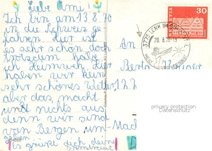 Lenk_Simmental Gasthof Wasserfall See Panorama Lenk Simmental postalisch gelaufen 1970 Erhaltung siehe scans [FriedD77] Frierer
