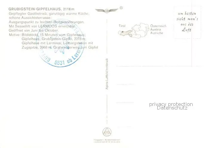 Lermoos_Tirol_AT Grubigstein Gipfelhaus Gipfelkreuz Fernsicht Wettersteingebirge postalisch nicht gelaufen nach 1965 Erhaltung siehe scans [FriedD77] Frierer
