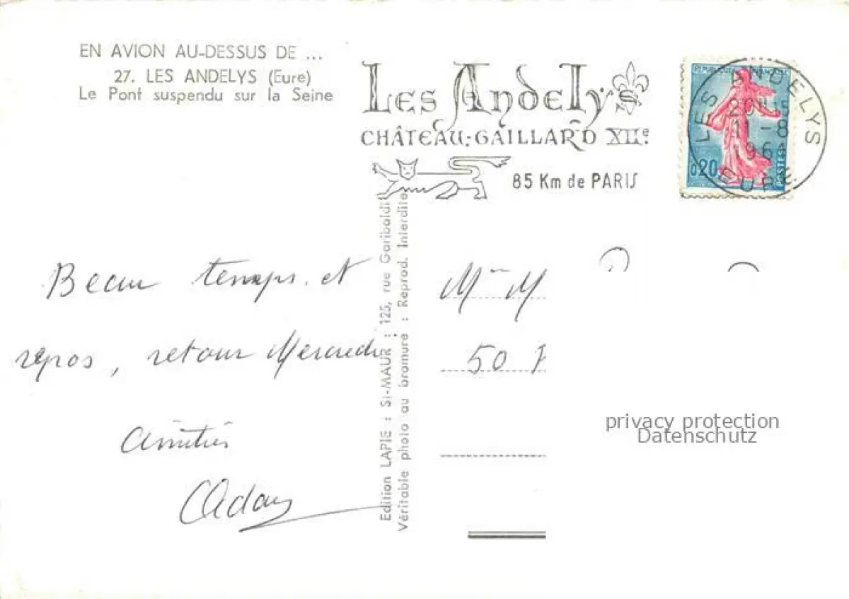 alte Postkarte Les Andelys 27 Eure Le Pont suspendu sur la Seine postalisch gelaufen Erhaltung siehe scans [WerneD78]