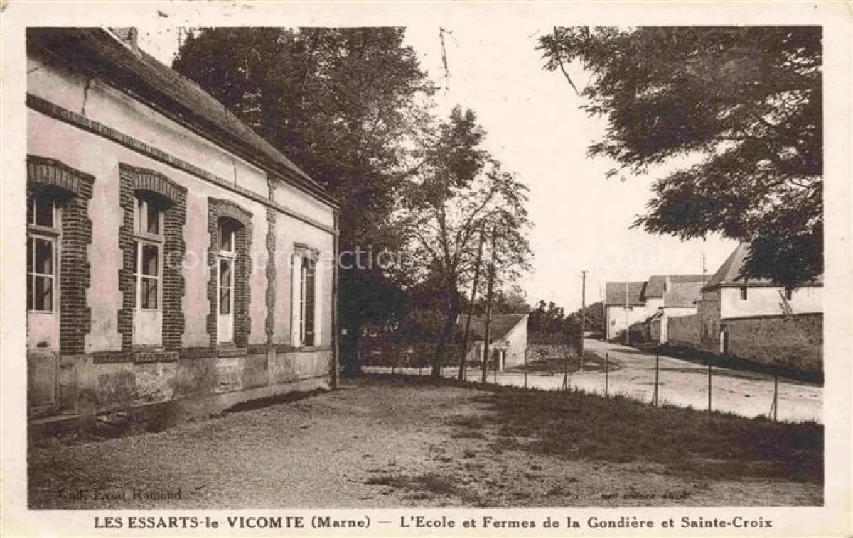 carte postale Les Essarts-le-Vicomte Epernay 51 Marne Ecole et Fermes de la Gondière et Sainte-Croix postalisch gelaufen Erhaltung siehe scans [FriedD77]