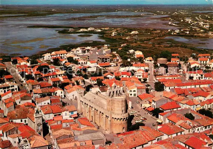 Les_Saintes-Maries-de-la-Mer Eglise fortifiée les Mas Camarguais vue aérienne Les postalisch gelaufen nach 1965 Erhaltung siehe scans [FriedD77] Frierer