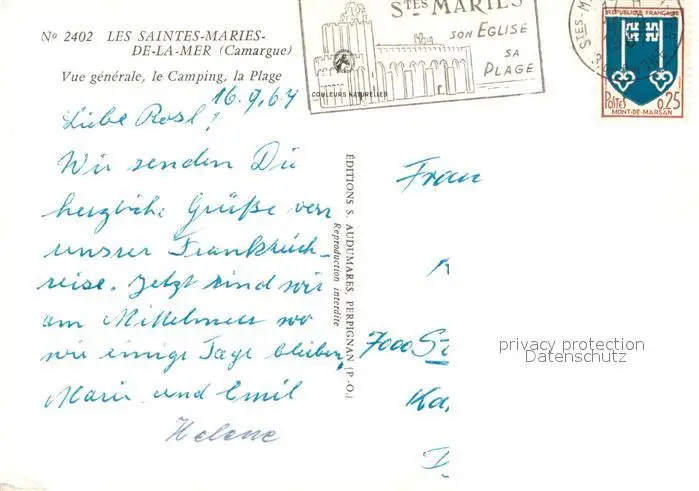 Les_Saintes-Maries-de-la-Mer Vue generale aerienne le Camping la Plage Les postalisch gelaufen 1964 Erhaltung siehe scans [WerneD78] WernPID7