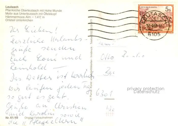 Leutasch Pfarrkirche Unterleutasch oefelekopf Hammermoos Alm Unterkirchen Leutasch postalisch gelaufen 1983 Erhaltung siehe scans [WerneD78] WernPID7