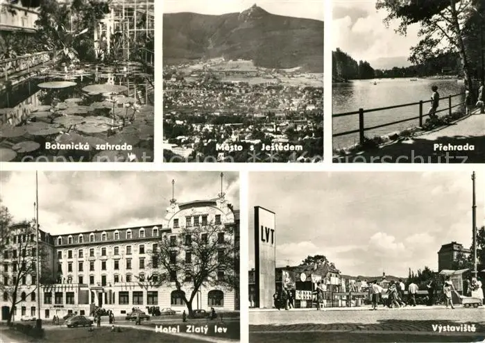 AK / Ansichtskarte Liberec Botanicka zahrada Mesto s Jestedem Prehrada Hotel Zlaty lev Vystaviste Liberec