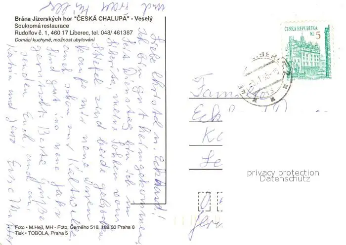 Liberec Ceska Chalupa Bar Gaststube Liberec postalisch gelaufen nach 1965 Erhaltung siehe scans [WerneD78] WernPID7