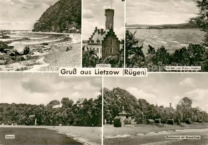 AK / Ansichtskarte Lietzow_Ruegen Strand Schloesschen Grosser und Kleiner Bodden Strand Cafe Lietzow Ruegen