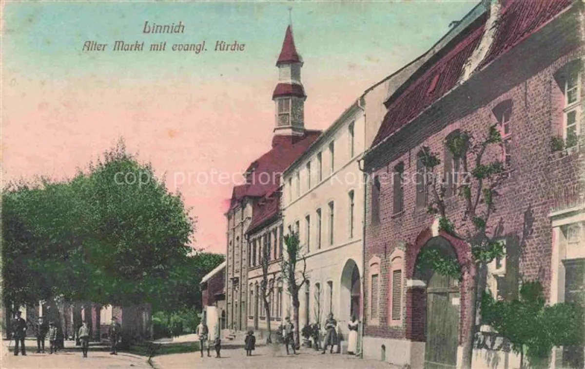 Linnich Alter Markt mit evangelischer Kirche postalisch nicht gelaufen Erhaltung siehe scans [FriedD77]