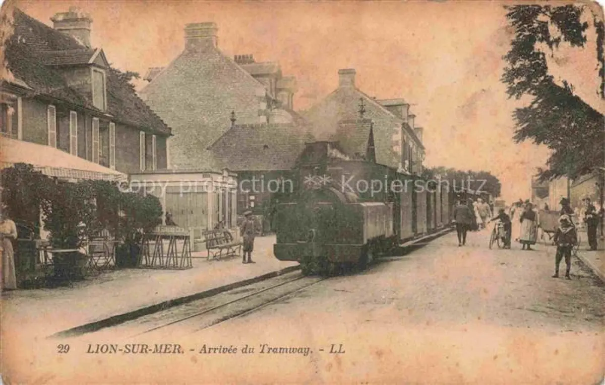 AK / Ansichtskarte Lion-sur-Mer CAEN 14 Calvados Arrivée du Tramway