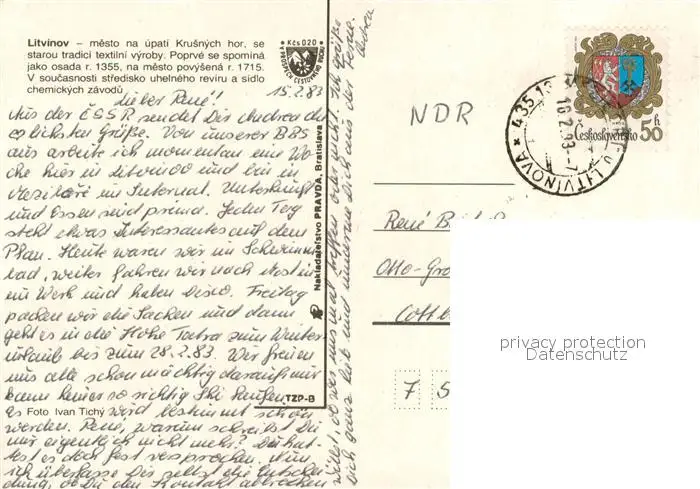 Litvinov Platz Innenstadt Kirche Freibad Wohnsiedlung Hochhaeuser Litvinov postalisch gelaufen 1983 Erhaltung siehe scans [FriedD77] Frierer