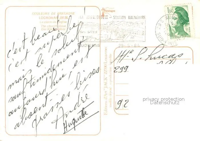Locronan Place de l église Locronan postalisch gelaufen 1984 Erhaltung siehe scans [FriedD77] Frierer