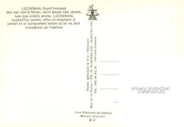 Locronan doit son nom a Ronan saint breton tres venere bien que simple ermite Locronan postalisch nicht gelaufen nach 1965 Erhaltung siehe scans [WerneD78] WernPID7