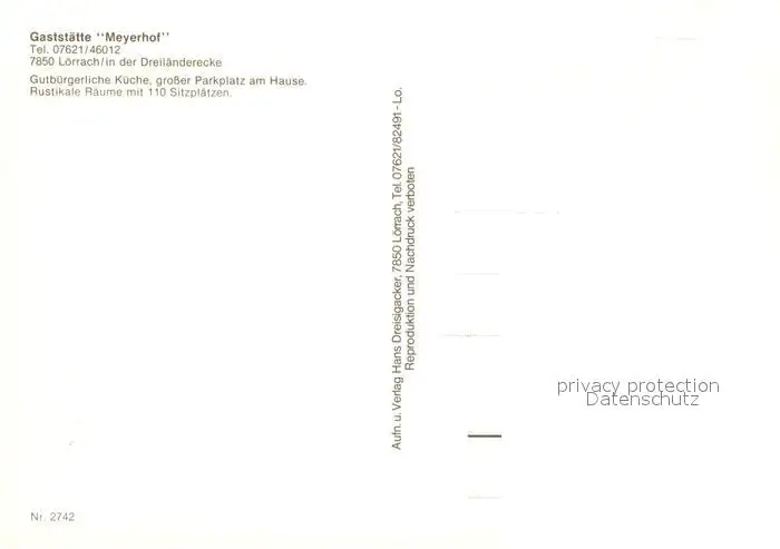 Loerrach Gaststaette Meyerhof Gastraeume Ruine Stadtansicht Loerrach postalisch nicht gelaufen nach 1965 Erhaltung siehe scans [WerneD78] WernPID7