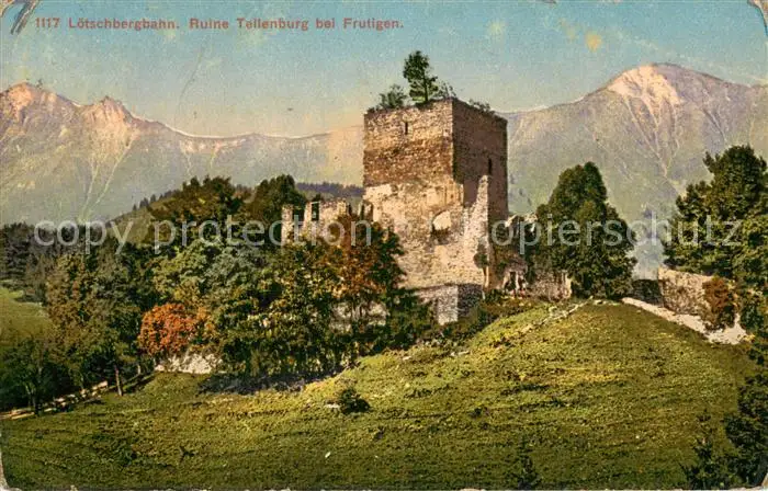 Loetschbergbahn_BE Ruine Tellenburg postalisch gelaufen 1927 Erhaltung siehe scans [WerneD78] WernPID7