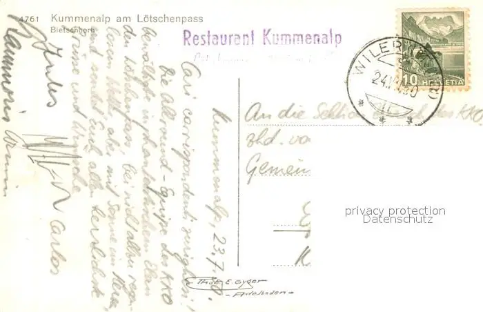 Loetschenpass_BE mit Kummenalp und Bietschhorn postalisch gelaufen 1950 Erhaltung siehe scans [FriedD77] Frierer