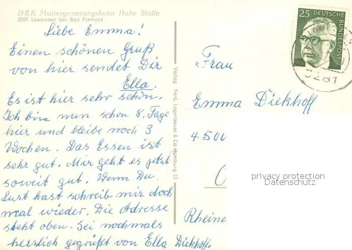 Loewensen DRK Muettergenesungsheim Hohe Stolle Loewensen postalisch gelaufen nach 1965 Erhaltung siehe scans [LiesaD40] LiesID40