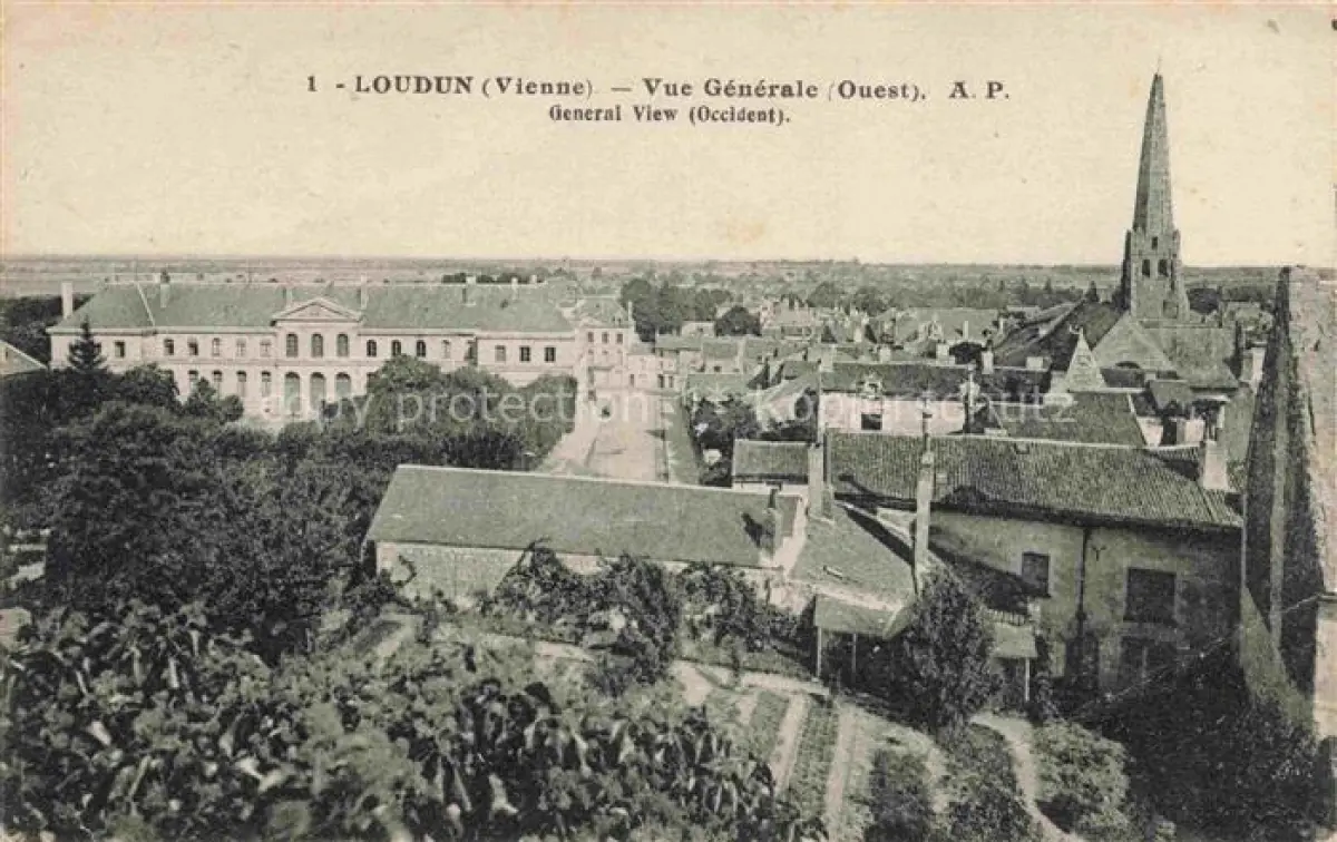 14115288 Loudun Chatellerault 86 Vienne Vue générale et l'église postalisch gelaufen Erhaltung siehe scans [FriedD77] carte postale Frie Katcode 11170086186137