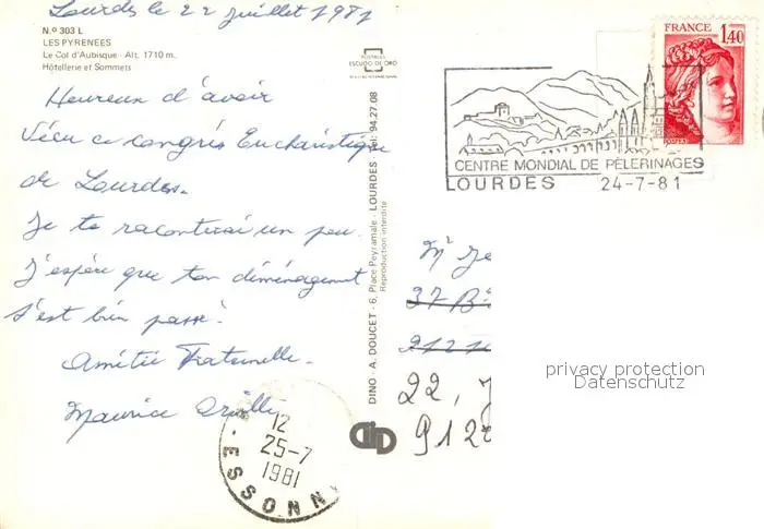 Lourdes_Hautes_Pyrenees Le Col d’Aubisque Hotellerie et Sommets Lourdes_Hautes_Pyrenees postalisch gelaufen 1981 Erhaltung siehe scans [WerneD78] WernPID7