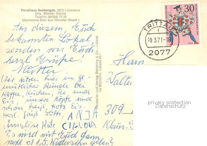 Luetjensee Forsthaus Seebergen Gaststaette Luetjensee postalisch gelaufen 1971 Erhaltung siehe scans [FriedD77] Frierer