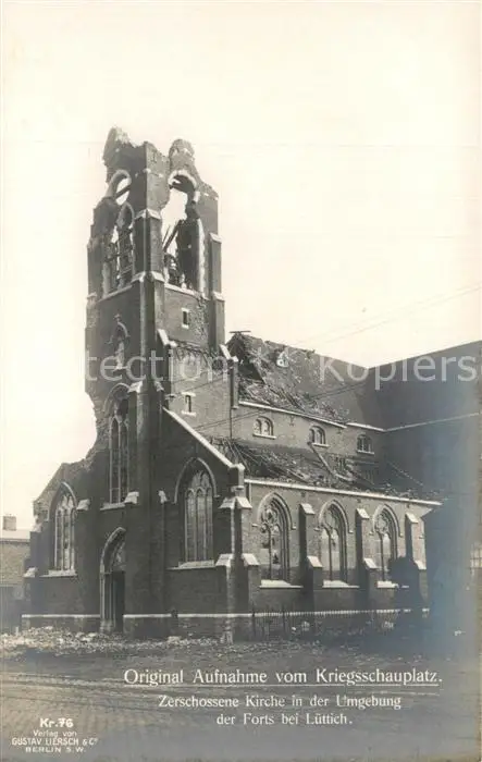 AK / Ansichtskarte Luettich Zerschossene Kirche in der Umgebung der Forts Luettich