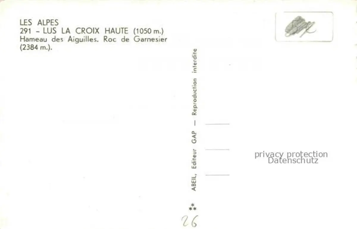 14108246 Lus-la-Croix-Haute DIE 26 Drome Hameau des Aiguilles Roc de Garnesier Alpes postalisch nicht gelaufen Erhaltung siehe scans [FriedD77] Frie Katcode 11170026126168
