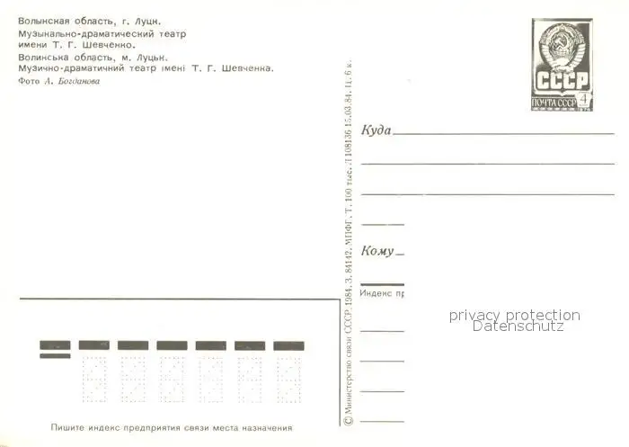 Luzk_Lutschesk Musikel Theater Names T.H.Schewtschenko postalisch nicht gelaufen 1921-1965 Erhaltung siehe scans [IrynaD87] Iryn PID
