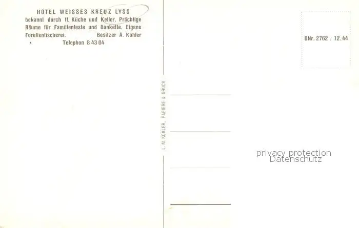 Lyss_BE Hotel Weisses Kreuz postalisch nicht gelaufen 1921-1965 Erhaltung siehe scans [WerneD78] WernPID7