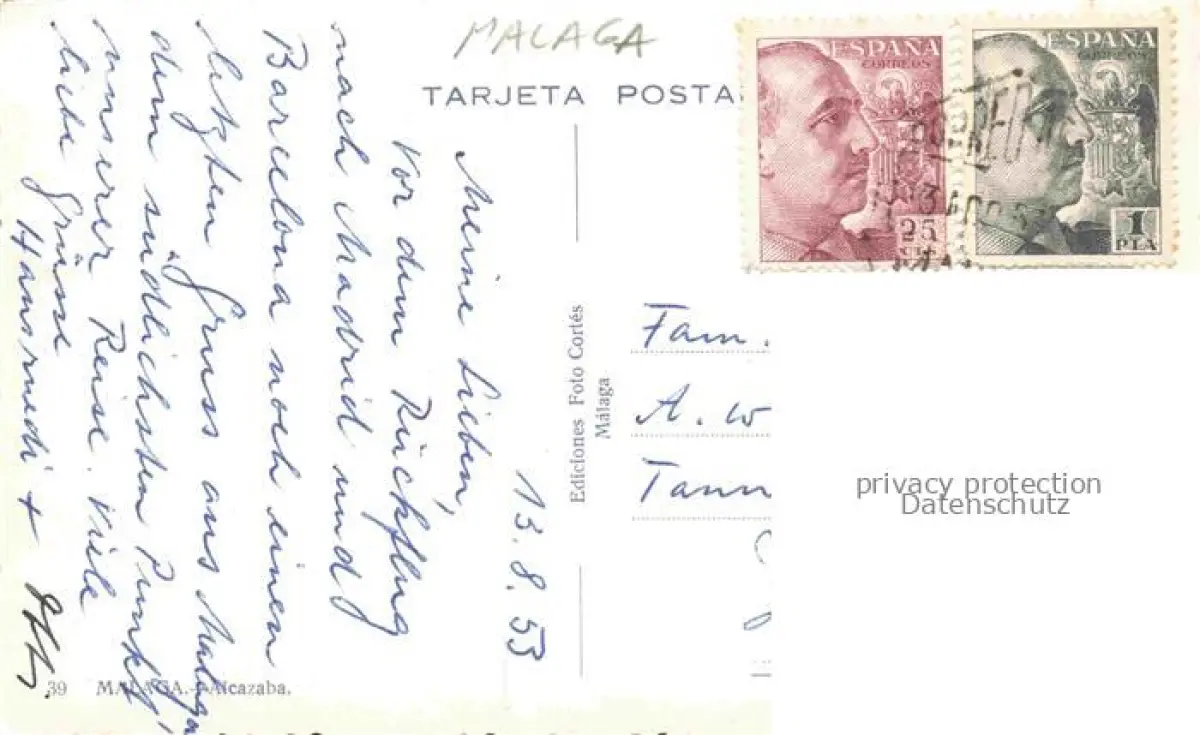 old postcard MALAGA Andalucia ES Alcazaba postalisch gelaufen Erhaltung siehe scans [WerneD78]