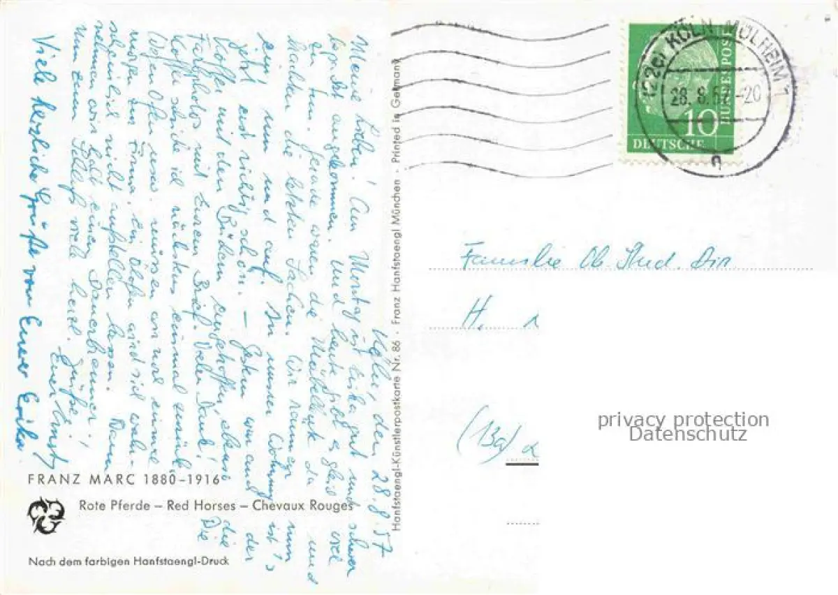 alte Postkarte MARC Franz (1880-1916) Kuenstlerkarte Rote Pferde postalisch gelaufen Erhaltung siehe scans [IrynaD87]